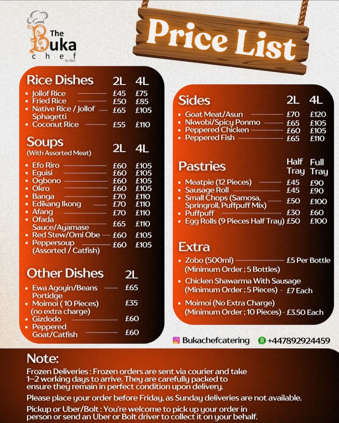 Food Menu / Pricing for Bowls and Trays